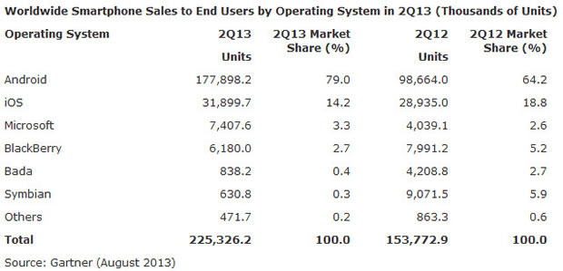 Gartner về doanh số thiết bị di động trong Quý 2 năm 2013, lượng thiết bị tiêu thụ trong quý của