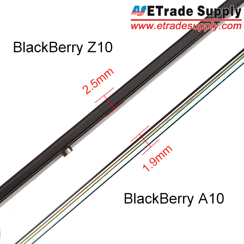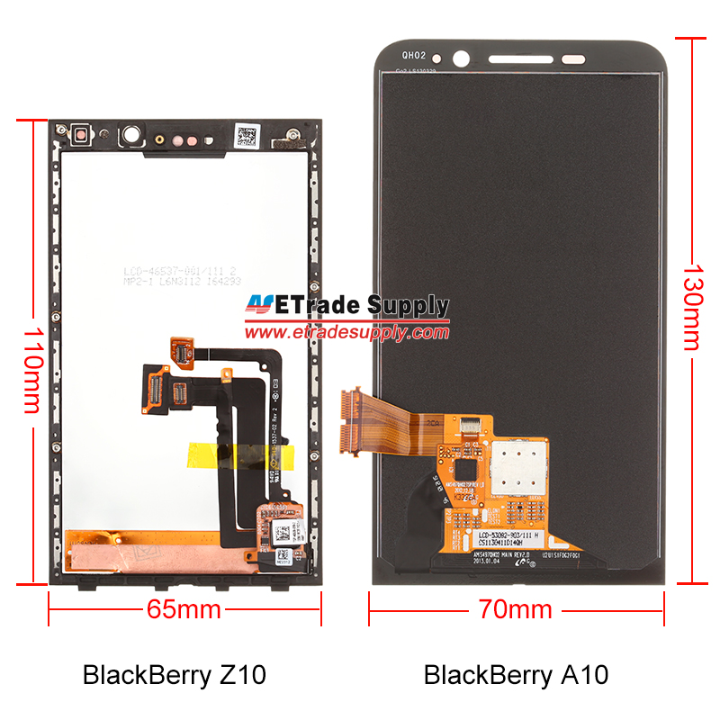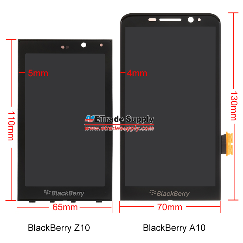A10. A10 sẽ có màn hình hiển thị 5" và có độ phân giải là 1280x720, bộ xử lý lõi kép. Vừa qua, ETradeSupply.com đã cung cấp một vài hình ảnh mới về Digitizer, LCD screen, Battery door với logo của nhà mạng Verizon. Kích thước màn hình LCD trên A10 là 130 x 70 x 1,9 mm, màn hình 5" SuperAMOLED. Vẫn chưa chắc chắn độ phân giải của màn hình trên A10 là 1280 x 720 hay 1920 x 1080, nhưng hy vọng Blackberry có thể cho ra mắt thiết bị này có màn hình hiển thị tương tự như Samsung Galaxy S4.