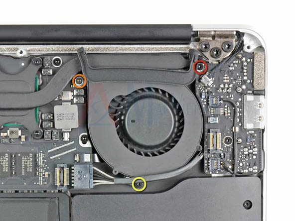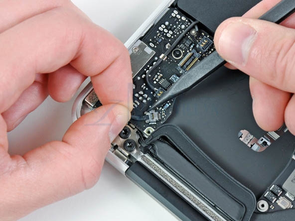 - Chúng tôi cố ý để lại ốc vít thứ ba để hỗ trợ trong quá trình thay màn hình Macbook bên các bước dưới