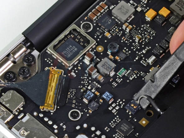 Dùng spudger và các ngón tay của bạn để nhẹ nhàng kéo cáp dữ liệu hiển thị từ socket của nó.