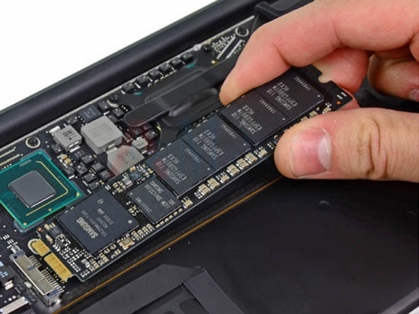 Kéo SSD thẳng ra khỏi vị trí và đặt gọn sang 1 bên bảng mainboard