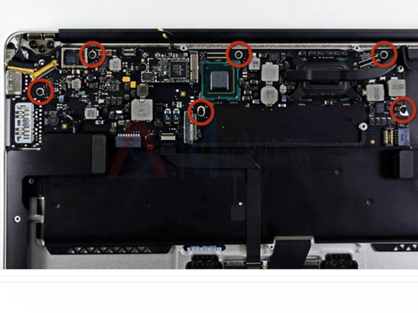 Tách sáu vị trí vít 6.3 mm (T5 ) để gỡ mainboard