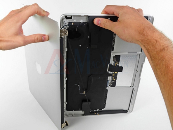 Đẩy về phía mainbord, sau đó xoay nhẹ để tách hoàn toàn khung màn hình ra khỏi Macbook
