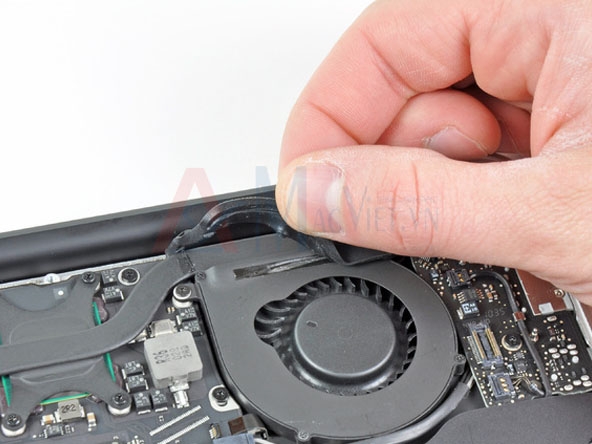 Nhẹ nhàng đẩy cáp wifi sang bên và loại bỏ vít 3 mm (T5) cuối cùng gắn với quạt Fan