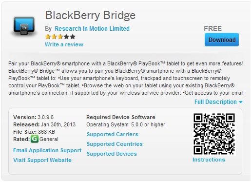 BlackBerry Bridge Updated To v2.0.0.35 tại App World